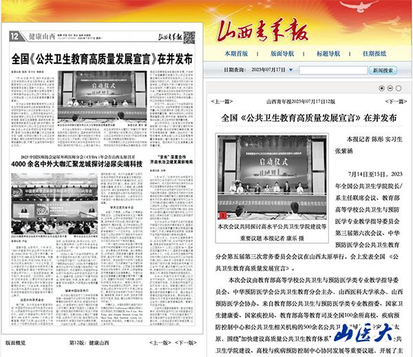 山西青年报 | 全国《公共卫生教育高质量发展宣言》在并发布