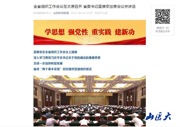 山西新闻联播 | 全省组织工作会议在太原召开 省委书记蓝佛安出席会议并讲话