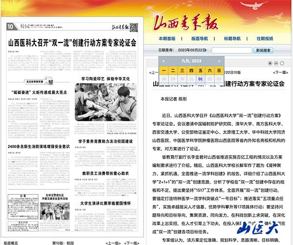 山西青年报 | 山西医科大召开“双一流”创建行动方案专家论证会