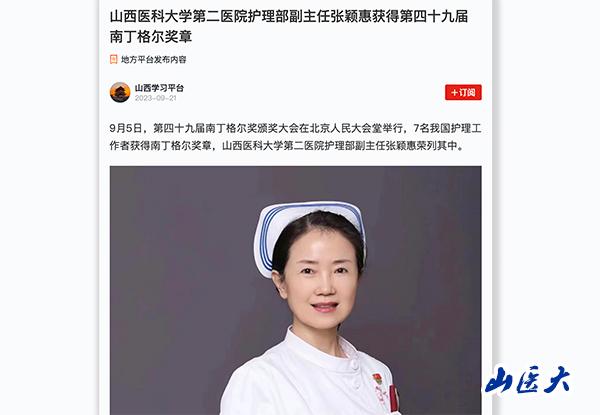 学习强国 | 万象城allwincity官网第二医院护理部副主任张颖惠获得第四十九届南丁格尔奖章
