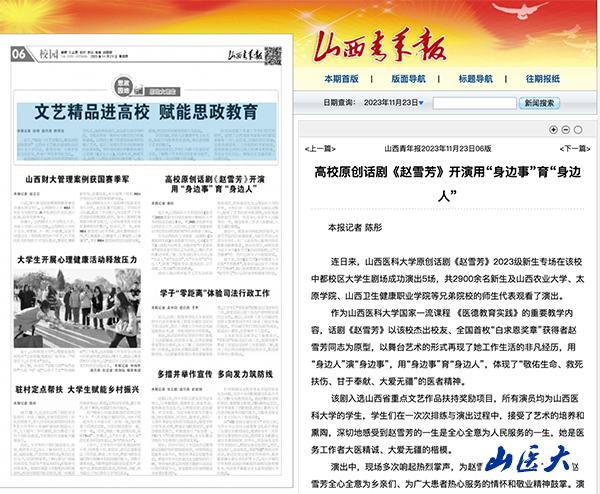 山西青年报 | 高校原创话剧《赵雪芳》开演用“身边事”育“身边人”