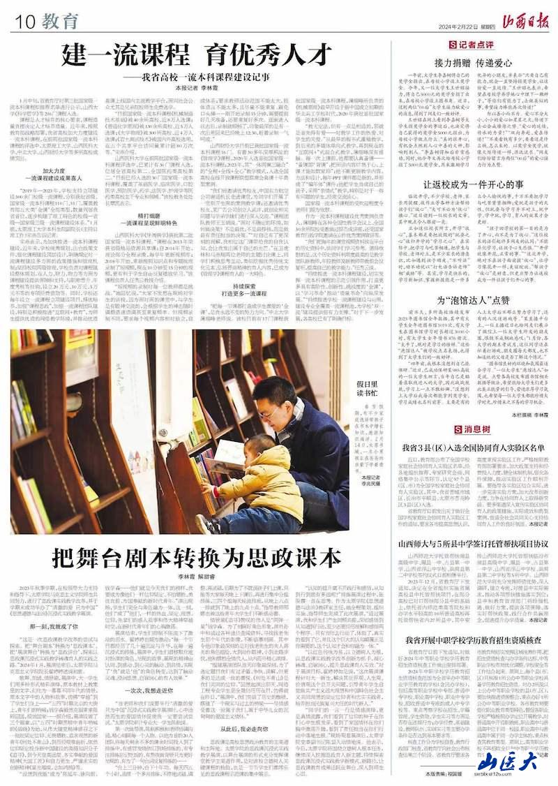 山西日报 | 建一流课程 育优秀人才——我省高校一流本科课程建设记事