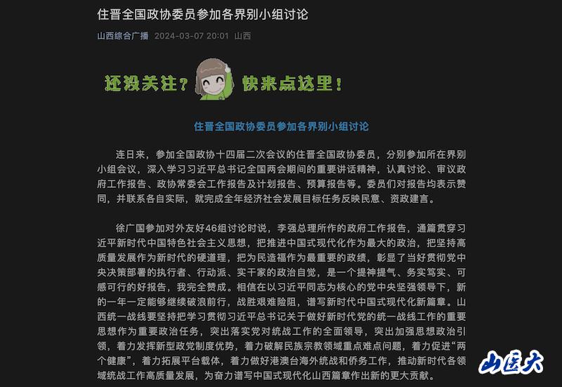 山西综合广播 |住晋全国政协委员参加各界别小组讨论
