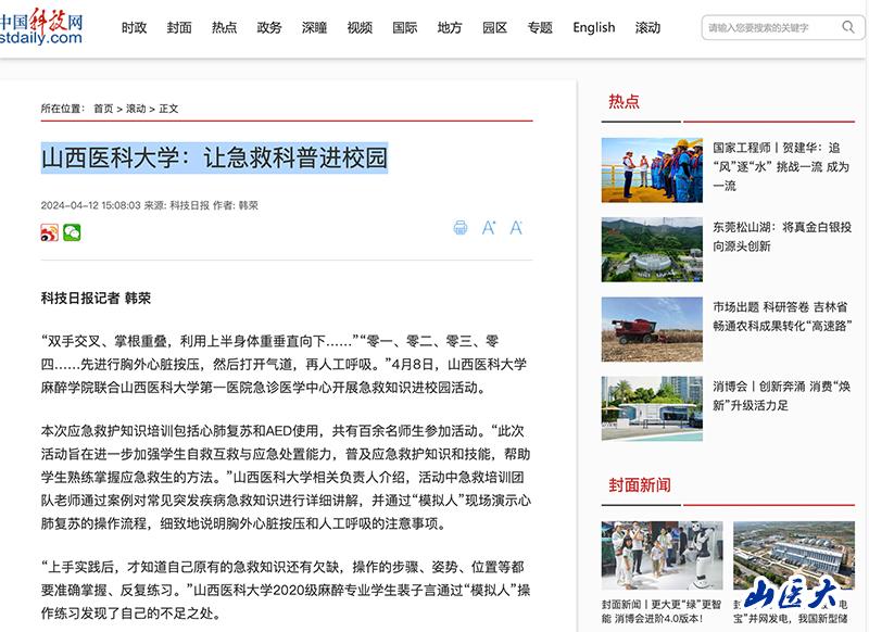 中国科技网 | 万象城allwincity官网:让急救科普进校园