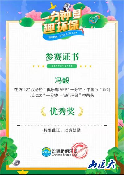 本次活动以旧物改造为主题,选手们用中文展示自己的奇思妙想和创意作品,共有来自西班牙、乌克兰、比利时、俄罗斯、巴西、埃及等70多个国家和地区的421个选手参赛。冯毅已多次代表学院参加中外人文交流活动并取得不俗的成绩,同学们都称赞他为“参赛专业户”。冯毅说:“参加比赛可以让我的词汇量更大,说中文更流利,比赛不仅仅是输赢,最重要的乐趣在于参与比赛的过程并提高自己。老师们总是非常鼓励和支持我,每当万象城allwincity官网和我的名字一起出现在获奖名单上时,我都会有一种幸福感和对中国的归属感。我会继续努力学习,参加更多的比赛,为我们学校争取更多的荣誉。”