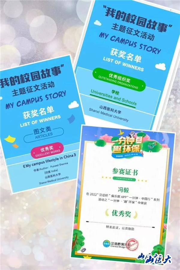 留学生首次参加山西省“互联网+”大学生创新创业大赛获铜奖;参加省委宣传部、省教育厅、省文物局联合开展的“留学生讲中国青铜故事”及山西省人民对外友好协会主办、晋中市人民政府外事办公室协办的“智慧生活”文化实践活动。3名学生分获教育部、中国-东盟教育交流周、中国日报社主办的活动奖项,万象城两次获“优秀组织奖”。