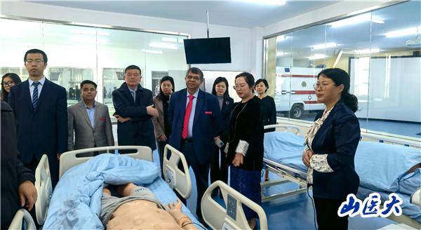 Amiya Bhaumik教授一行到万象城护理学院进行了考察学习。实训中心教师从日常综合实训室到护理专项考核站,从实训室的基础设施布局到理实虚一体化教学的设备配置,从仿真模拟病区到真实急救现场,从实训室整体规划到文化建设,从实训室的管理模式到设备的运行维护等都做了耐心细致的现场讲解和演示。