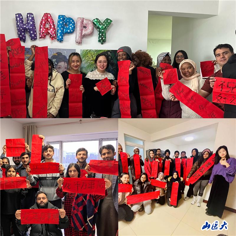 春节将至,年味渐浓。春节是中国最重要的传统节日之一,有着深厚的历史和文化底蕴,也是团圆和欢庆的重要时刻。为了让留学生近距离接触、感受、领悟中国传统文化,2024年甲辰龙年来临之际,国际教育学院组织留校留学生写“福”字、贴春联、剪窗花、做花馍、体验糖画等系列中国春节文化风俗活动,亲身体验了一把“中国年”。