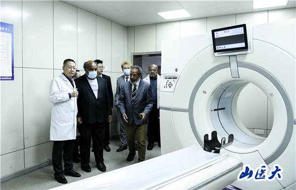 代表团一行在董红霖的陪同下,先后来到医院健康体检部、门诊楼、重症医学科一病区和1号楼CT室、放射室、核磁室等地进行了实地参观。对医院的医疗技术水平以及发展规模表示赞叹,对医院的综合实力给予高度评价。