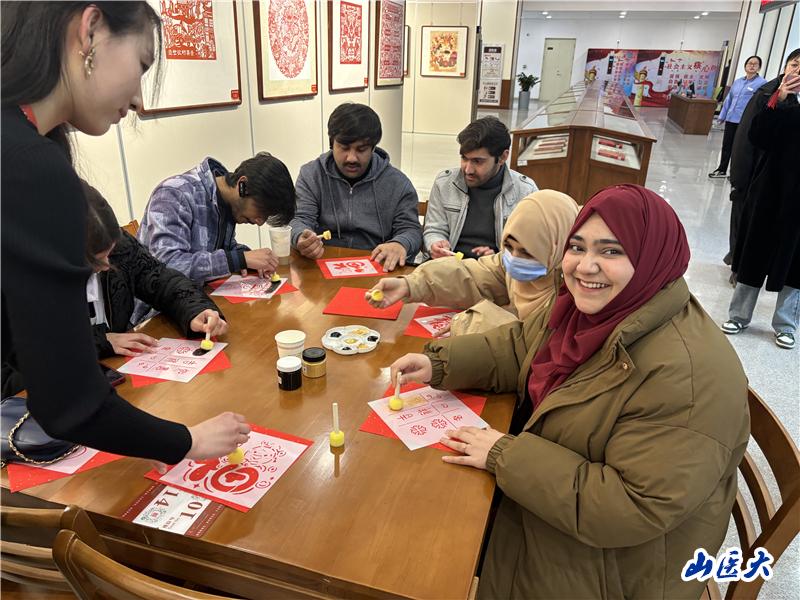 活动期间,留学生们首先欣赏了晋中的非遗文化展示和传统活动,精美的铜浮雕壁画《沃域英杰图》、巧夺天工的剪纸艺术、充满生活气息的农民画展、韵味十足的胡氏荣茶艺表演,以及投壶、射箭等传统项目,无一不让他们大开眼界。随后,留学生们还亲身参与各类手工艺制作活动中,兴致勃勃地描年画、创作漆扇、制作掐丝珐琅,在动手实践中感受中国传统工艺的精巧。在元宵制作环节,大家在工作人员的耐心指导下,亲手制作元宵,品尝自己的劳动成果,一颗颗圆润的元宵,不仅象征着团圆与幸福,更让留学生们在异国他乡感受到了家的温暖。此外,留学生们还体验了中国传统乐器,古琴的悠扬琴声让他们陶醉其中;在古诗词互动环节,留学生们与晋中市三位著名诗人展开“跨时空”的诗词对答,现场气氛热烈非凡。