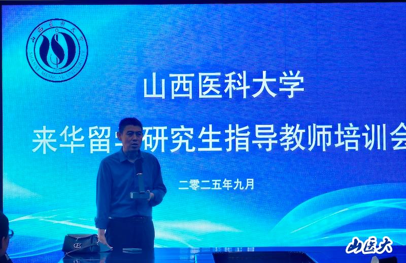 9月28日下午,学校在迎泽校区举办来华留学研究生指导教师培训会。第一临床医学院等9所临床医学院教学负责人、管理人员及留学生研究生导师共34人参会,研究生学院与国际教育学院相关负责人出席并发言。