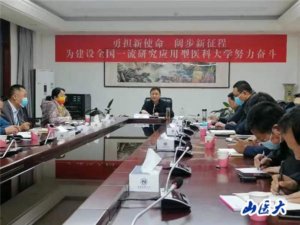 会议强调,近期我省疫情形势严峻复杂,社会面的疫情还没有消除,外防输入的压力依然很大,学校疫情防控工作不能有一刻松懈。一要进一步提高政治站位。要切实把思想和行动统一到党中央、国务院及省委、省政府决策部署上来,坚持“动态清零”总方针不动摇,迎难而上、全力以赴,为党的二十大胜利召开营造安全稳定的校园环境。二要进一步守稳学校阵地。要做到全员管理不漏一人、守住大门不放一人、宣传服务送达每人、责任压实网格到人,科学精准做好疫情防控各项工作。要同步做好安全隐患排查工作、值班值守工作,确保取得防疫情、保安全的综合效果。三要进一步推动重点工作。持续推动做好全国一流研究应用型医科大学建设方案、重点马克思主义学院迎评验收工作、高水平公共卫生学院建设工作、设备贴息贷款工作、迎泽校区改造提升工作,做好收听收看中国共产党第二十次全国代表大会相关工作,团结和激励全校师生医护员工为早日建成全国一流研究应用型医科大学而努力奋斗。