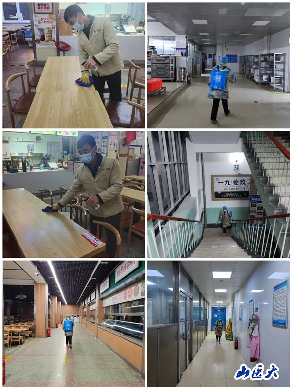 校园疫情防控管理期间,校内生活垃圾量陡增,物业科启用了备用垃圾桶,增加了垃圾清运频次,并对垃圾存放点、垃圾桶、果皮箱、卫生间等部位进行重点消杀。用喷施面积广的烟雾水雾两用消杀机,对道路、操场进行360度无死角消杀。食堂工作人员按要求每日对大厅、后厨、桌椅板凳等所有接触面进行消杀,对售餐间进行紫外线消毒,对所有餐具进行消毒。