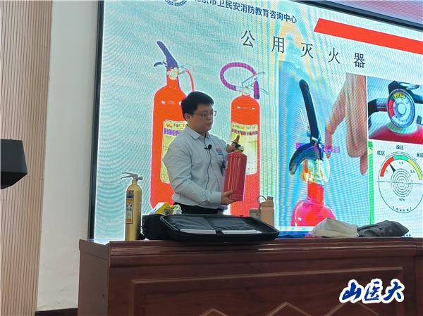 讲解及演习过程中,武装保卫部李学智老师从理论知识、火灾应对等正反实例方面教育大家必须提高消防安全意识,提升消防安全应对能力,讲解形象生动,贴近生活,富有深度,引人思考。
