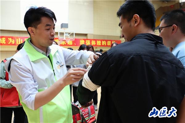 杨永杰护士长对萤火虫公益志愿团队进行了介绍,通过数据分析和案例展示,强调了及时的急救处置对心脏骤停患者的重要性,以“评、按、通、果”四字归纳了心肺复苏的操作步骤。针对运动康复的专业特殊性,田冬老师具体讲解了大学生常见外伤处理理论和技术,丰富了运康学子的专业知识。