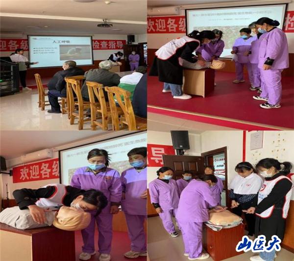 参加义诊的护理团队还为患者提供了血压及血氧饱和度监测等服务。义诊现场,韩丽琴护士长为患者及护工进行心肺复苏培训,讲解心肺复苏术的操作步骤、要点及注意事项。宁瓜香护士进行了现场模拟人心肺复苏演示,并向患者及护工强调了急救的时效性和重要性。