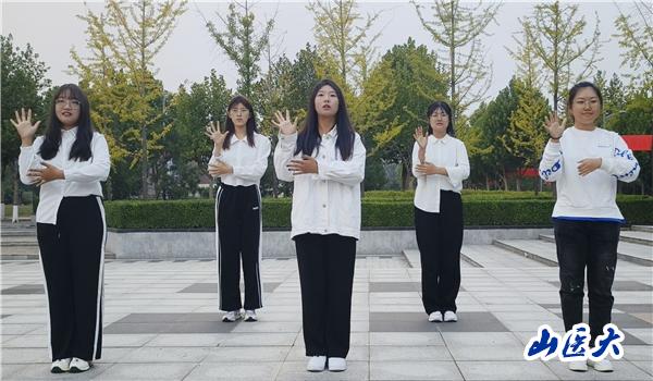 杨奕、梅妙玉、李兆娜、王紫涵、田佳雨同学表演了手势舞《新征程》,爱国情怀在指尖流淌,共同奋进将是每位同学的人生路标。