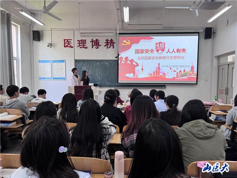 在第九个“全民国家安全教育日”来临之际,公共卫生学院2021级卫生检验与检疫专业于4月12日在中都校区慎思A105室开展了“国家安全,青春挺膺”主题班会。活动由团支部书记李卓如、安佳怡主持,2021级卫检专业全体同学参加。