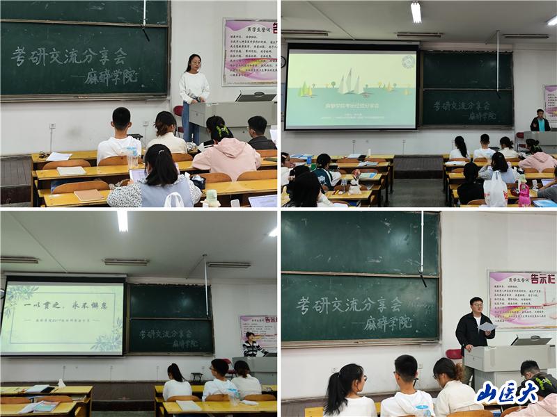 为扎实推进学风建设,帮助学生更好地明确学习目标和方向。4月13日上午,麻醉学院在迎泽校区开展了2024年考研经验交流会。2020级全体本科生和2019级已考取高校硕士研究生的学生代表参加交流会,思想政治辅导员王婕主持。