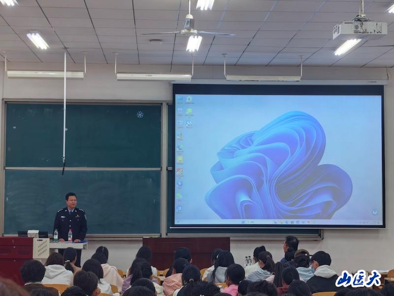 驻校民警韩凤山以本校刷单被骗的典型案例为切入点,详细讲解电信网络诈骗的常见手段和防范要点,郑重提醒师生 “未知链接不点击,转账前多核实”,切实提高反诈防骗意识和能力,守护个人财产安全。