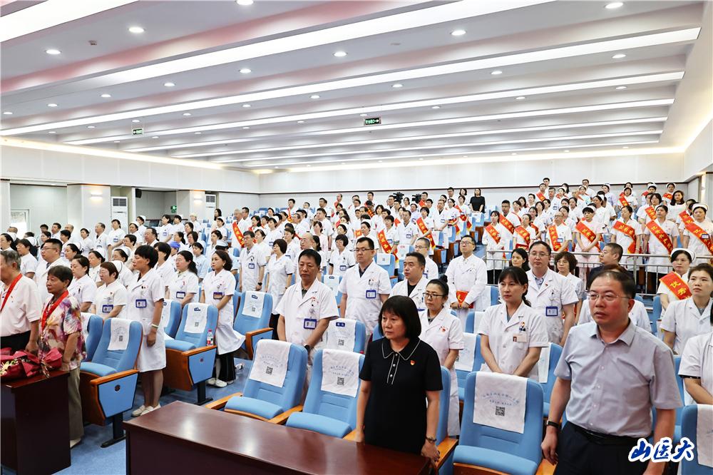 大会在庄严的国歌声中启幕。院党委委员、纪委书记丁晖宣读了医院2025年优秀党员、优秀党务工作者、先进党支部表彰决定,副院长韩清华宣读了2024年度先进集体和先进个人表彰决定,院党委委员、副院长贾红燕宣读了2024-2025年度优秀共青团员、优秀共青团干部、优秀团支部、优秀青年文明号、优秀青年表彰决定。与会院领导为受表彰的集体和个人颁发荣誉证书和荣誉奖牌。
