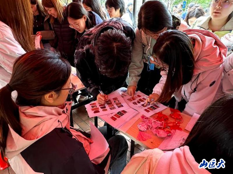 现场氛围热烈而有序,师生们或围站在展板前,就晋药的临床应用展开深入探讨;或在互动游戏区踊跃参与,为答对知识点而欢欣雀跃;或手持养生茶盏,细细品味晋药的独特药香。轻声的交流与不时的笑声交织,让专业知识的学习少了枯燥感,多了烟火气。参与活动的同学兴奋地说“这次活动不仅摸清了‘十大晋药’的药食两用价值,更找到了中药学知识的落地场景!”,这场实践让“纸上谈兵”的专业理论变得鲜活,也让自己对未来的学习方向有了更清晰的规划,期待能有更多类似的实践机会。