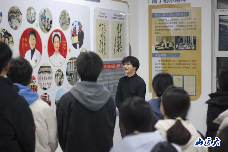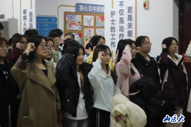 宣讲伊始,宣讲团通过史料带领同学们回顾了弗洛伦斯・南丁格尔的不凡一生:从富贵出身毅然投身护理事业,到克里米亚战争中以科学管理大幅降低伤病员死亡率,再到创立世界第一所正规护士学校,她用智慧、勇气与博爱奠定了现代护理学基石,塑造了“燃烧自己,照亮别人”的精神内核。“南丁格尔在中国”篇章是宣讲重点。宣讲团回顾了万象城荣获南丁格尔奖章的杨辉、张颖慧两位优秀校友的事迹,她们以实际行动诠释了南丁格尔精神在新时代的生动实践,激励着在场学子以榜样为镜,不断提升专业素养与人文关怀能力。宣讲介绍了拥有120支分队、一万七千余名志愿者的山西南丁格尔志愿服务队,他们将专业护理与志愿服务送至三晋大地各个角落。“我心目中的南丁格尔”作品展览中,同学们的海报与心得抒发了对先驱的敬仰与职业憧憬。活动尾声,全体学子在宣讲员领誓下庄严宣读南丁格尔誓言,坚定献身护理事业的决心。