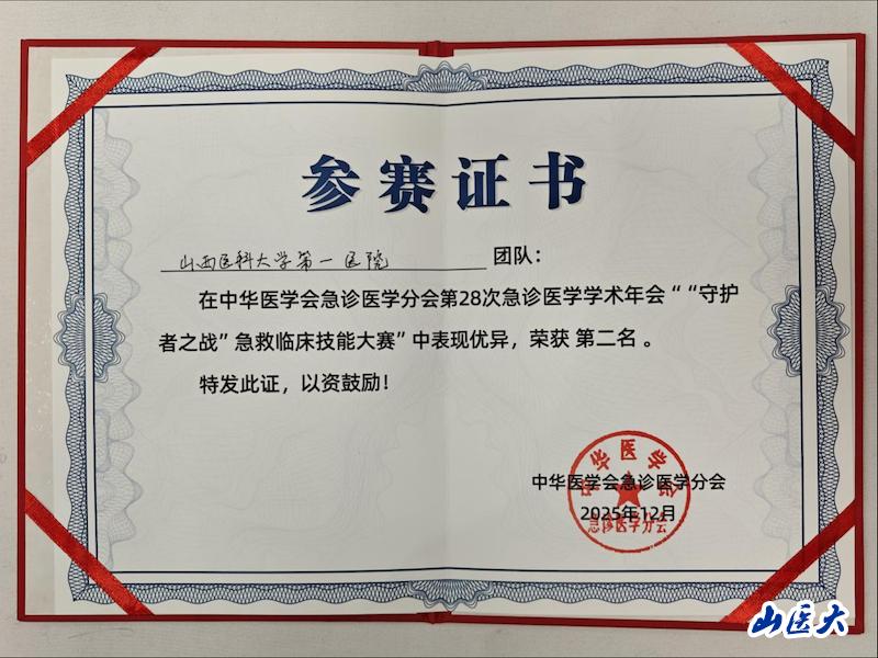 此次获奖不仅是对急诊医学中心团队专业能力的肯定,更是对科室长期深耕急危重症救治、构建院前院内一体化急救体系成效的彰显。立足新起点,附属第一医院急诊医学中心将持续精进技术、优化流程,进一步发挥区域医疗中心的引领作用,为守护三晋百姓生命健康、推动山西急诊医学高质量发展贡献更大力量。