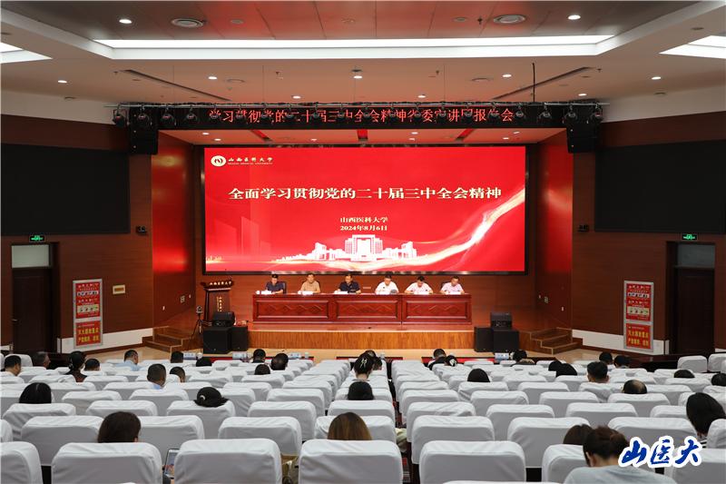 报告会结束后,校党委书记王军就深入推进学习贯彻党的二十届三中全会精神作了强调部署。他指出,党的二十届三中全会是在以中国式现代化全面推进强国建设、民族复兴伟业的关键时期召开的一次十分重要的会议,是新的历史起点上进一步全面深化改革、推进中国式现代化的总动员、总部署。我们必须把全会精神学习好、领会好、贯彻好。一要坚定政治自觉,全面系统学习党的二十届三中全会精神。全校上下要深刻认识党的二十届三中全会的重大意义,深刻领会把握习近平总书记关于全面深化改革的一系列新思想、新观点、新论断,深刻领会把握进一步全面深化改革的主题、重大原则、重大举措、根本保证,准确把握其核心要义、丰富内涵和实践要求,切实把思想和行动统一到全会精神上来,切实增强进一步全面深化改革、推进中国式现代化的政治自觉、思想自觉和行动自觉,不断谱写学校高质量发展新篇章。二要注重研究阐释,把学习宣传党的二十届三中全会精神引向深入。充分发挥平台优势、学科优势、人才优势,对全会精神进行体系化研究和理论性阐释,帮助党员干部和师生群众更好理解把握全会精神。按照有关要求,深入开展面向基层、面向师生医护员工的宣讲,通过理论学习中心组、“三会一课”、主题党日等形式,开展好集中学习、个人自学、交流研讨,不断激发广大党员干部、师生群众干事创业的热情,以强烈的责任担当贯彻落实好全会精神。三要聚焦高质量发展,以钉钉子精神抓好各项改革任务的落实。提高站位抓改革落实,把学校改革发展放到中国式现代化这个最大的政治中,以更高站位、更宽视野、更大格局去谋划和推进各项工作。系统集成抓改革落实,始终认清楚、把握好“稳”与“进”、“立”与“破”、“质”与“量”,集成推进学科建设、科学研究、人才队伍、绩效评价、资源配置等改革。把握重点抓改革落实,突出抓好有组织的科研改革,不断深化治理体系改革,持续完善分配制度配套改革,谋深谋实更多具有万象城辨识度、标志性、影响力的重大改革举措,以实干实绩回应师生期盼、推动改革深化。