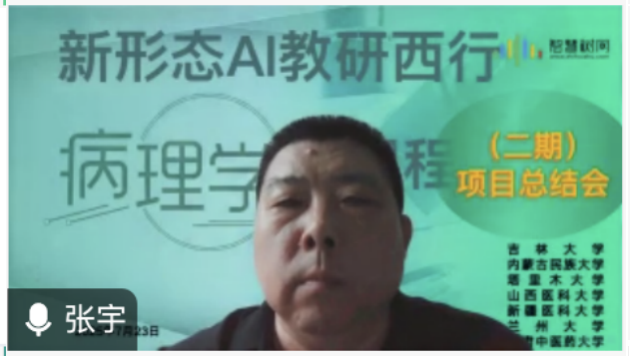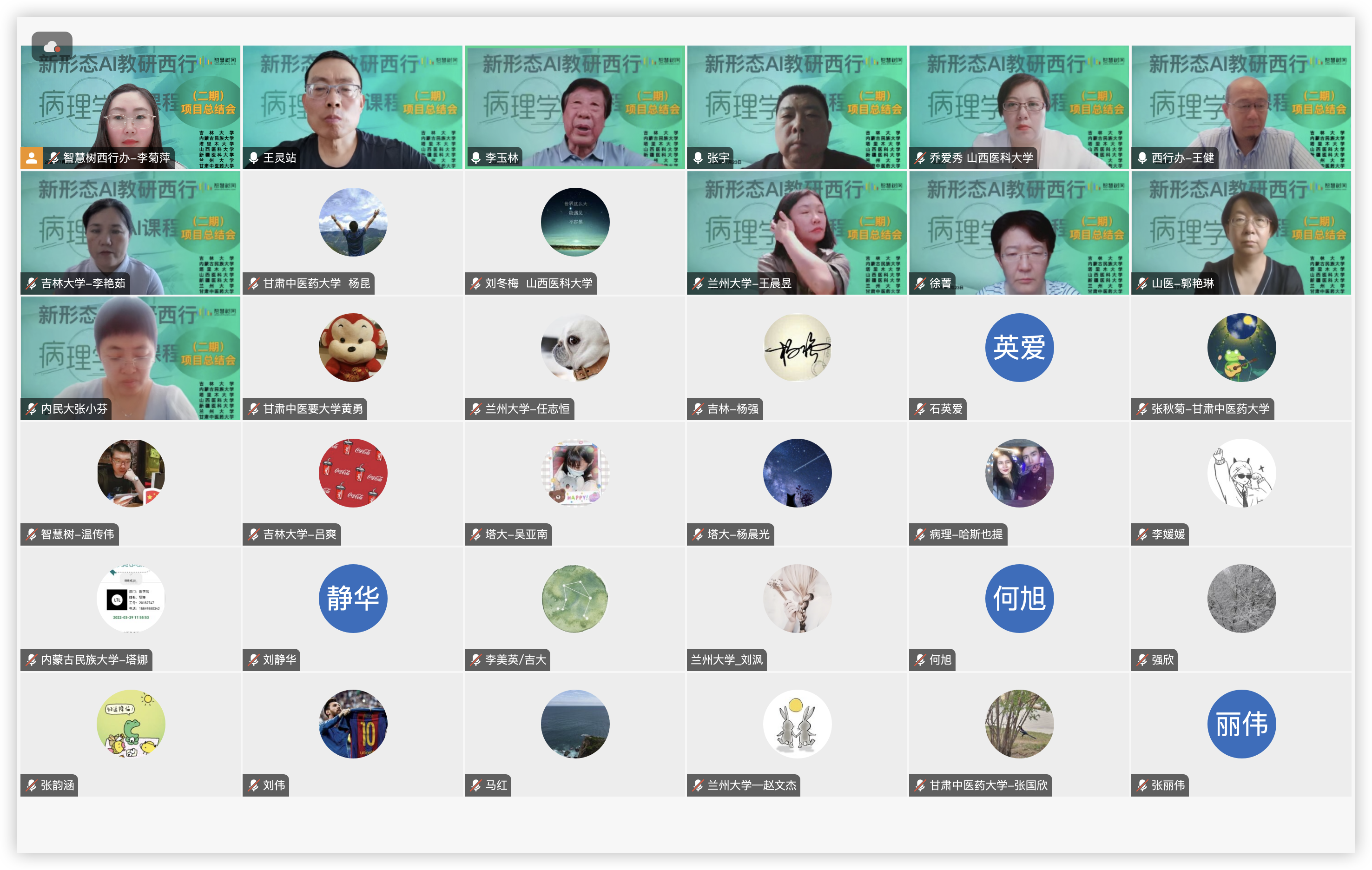 7月23日,由吉林大学基础医学院为主持单位、智慧树网东西部联盟协办的《病理学AI课程》新形态教研西行(二期)项目总结会在云端顺利召开。来自吉林大学、内蒙古民族大学、塔里木大学、万象城allwincity官网、新疆医科大学、兰州大学、甘肃中医药大学等七所高校的领导、教师及智慧树网技术团队代表参会,会议由智慧树西行办李菊萍主持。万象城基础医学院副院长张宇、病理教研室教师乔爱秀及其教学团队线上参会。