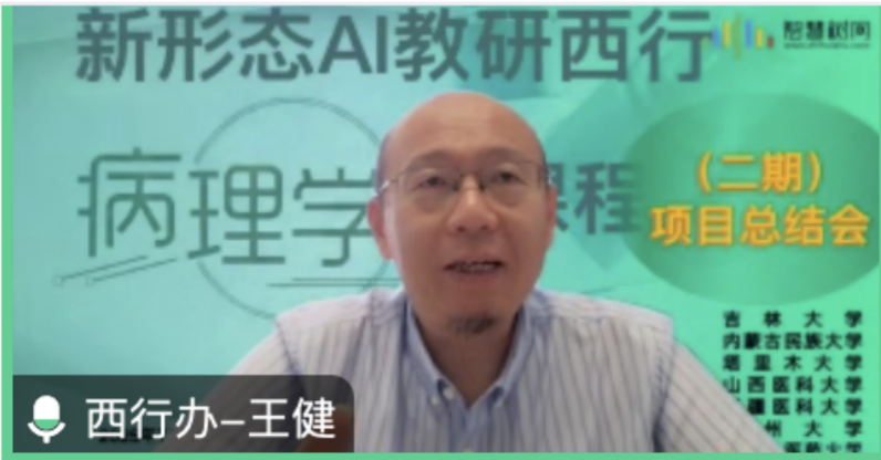 《病理学AI课程》新形态教研西行(二期)项目自2024年4月启动以来,以“慕课西部行2.0”为指引,聚焦病理学教学痛点,创新构建了“AI技术赋能+跨区域教研协作”的新模式。吉林大学原常务副校长李玉林教授在致辞中指出,项目以“资源共享、师资共培、质量共进”为核心目标,通过AI技术赋能中西部医学教育,助力实现教育资源均衡发展。智慧树网东西部联盟西行办负责人王健表示,本项目已成为参与高校数量最多、师资规模最大、持续时间最长的项目,成果丰硕。