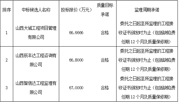 万象城allwincity官网迎泽校区北U教学楼改建项目监理中标候选人情况:
