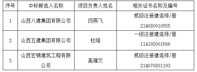 万象城allwincity官网迎泽校区北U教学楼改建项目加固工程中标候选人情况: