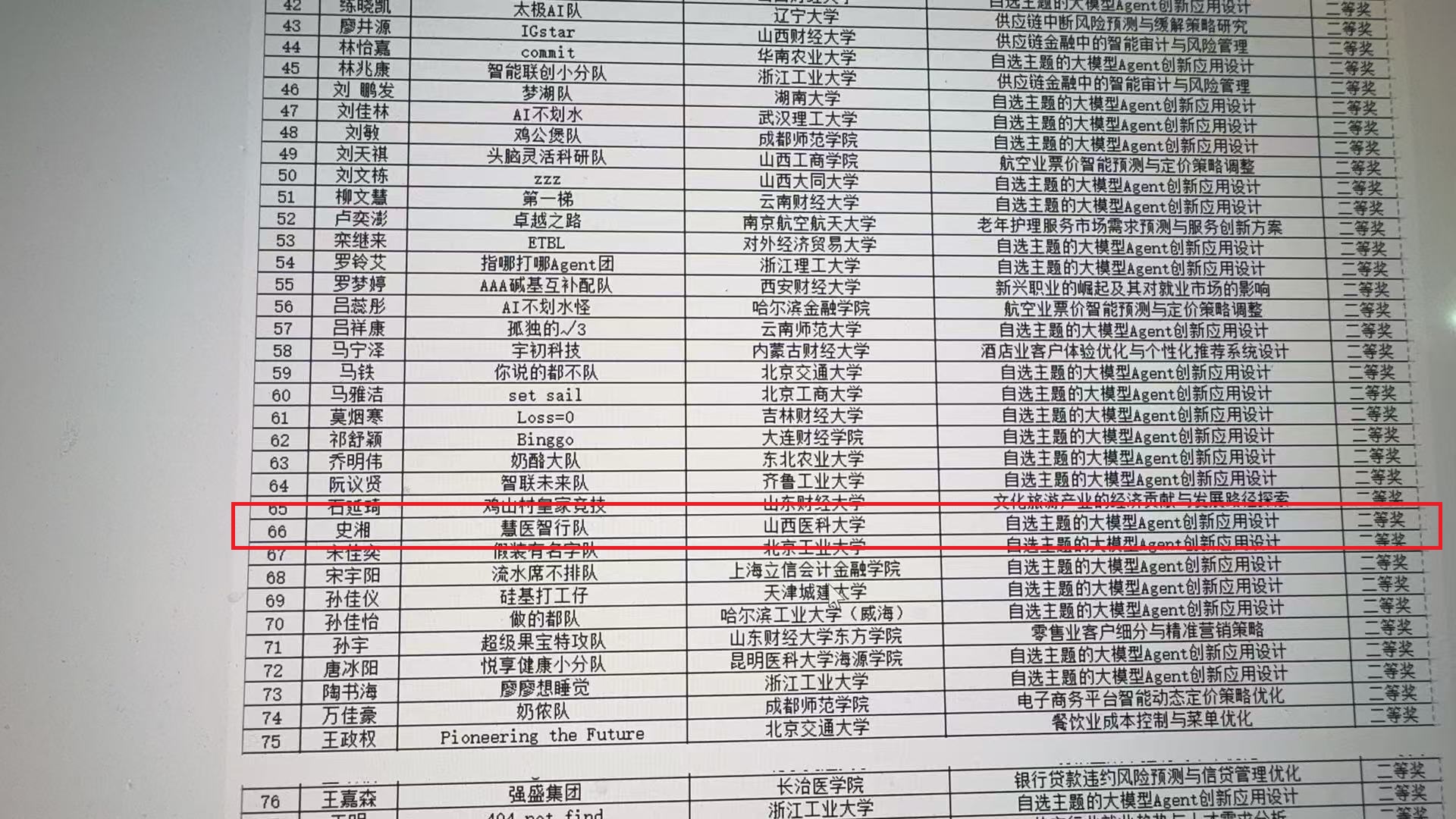 近年来,计算机教学部积极通过激发计算机科技创新联盟学生社团的创新活力,为学子搭建前沿技术探索和培训平台。此次在全国高规格AI 赛事中取得优异成绩,不仅彰显了学生扎实的专业素养与创新能力,更印证了计算机教学部在人才培养、科研创新方面的显著成效,为学校建设全国一流研究应用型医科大学注入强劲动力。未来计算机教学部将持续深耕教学与指导工作,培育更多兼具创新精神与实践能力的优秀人才,在人工智能创新赛道上再创佳绩。