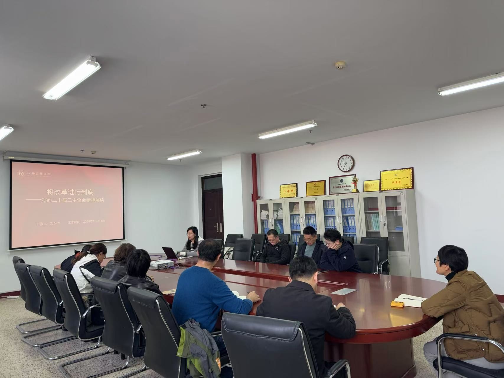 最后,刘永梅老师就学习二十届三中全会精神提出建议,鼓励大家理清全会精神的基本脉络和思想逻辑,从整体上把握全会对于国家发展、改革方向的战略部署,以便更好地将全会精神融入到日常的教学、科研以及管理工作中。