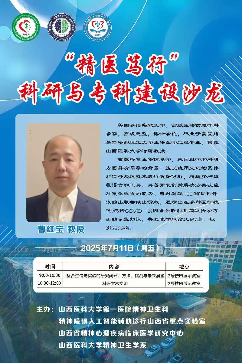 精医笃行,学术沙龙|精神卫生学系邀请曹红宝教授开展学术讲座