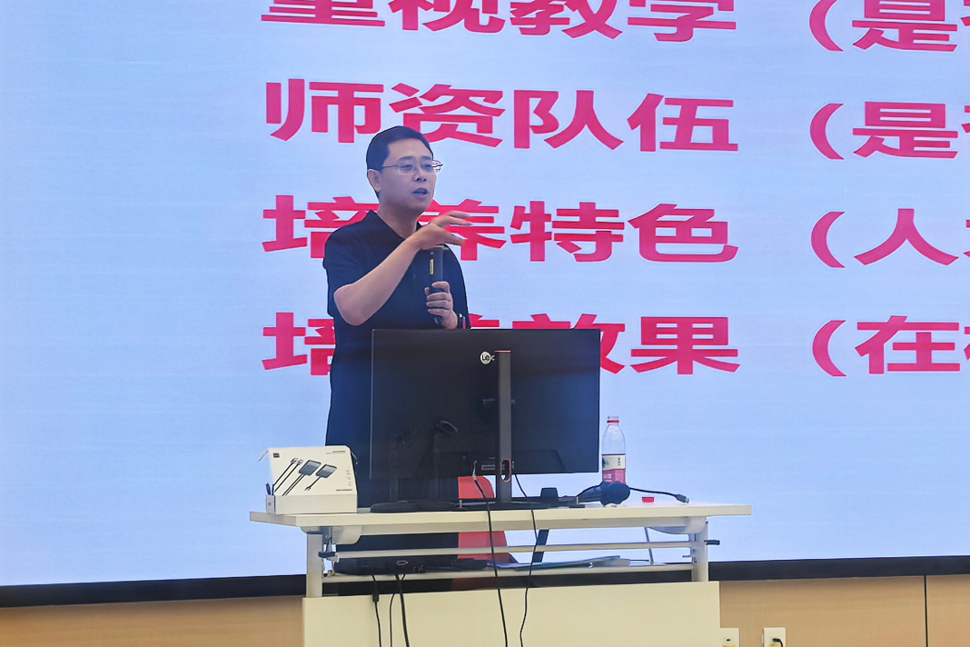 教学部杨涛部长致欢迎词,表示本科教育教学评估是检验学院教学质量的重要契机,也是推动学院内涵建设的关键抓手,当前我院评估工作迫切需要学校专家的精准指导,希望全体参训人员珍惜学习机会,认真领会培训要点,将所学内容转化为实际工作举措,确保评估工作有序高效推进。