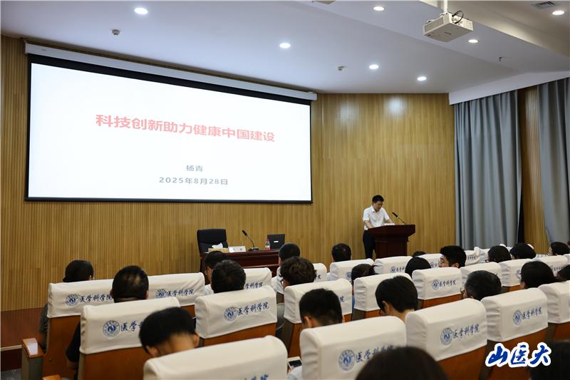 解军对杨青的精彩讲座表示衷心感谢。他指出,本次讲座立意高远、内容前瞻,兼具理论高度与实践指导性,为学校今后的科技创新、学科建设与人才培养提供了重要指引。他强调,学校作为山西省医学教育、科研和医疗服务的重要力量,始终以服务国家卫生健康战略、助力区域经济社会发展为己任。杨教授的专题讲座为学校在卫生健康科技创新领域的发展进一步指明了方向。学校将以此次讲座为契机,深入贯彻落实科技创新相关部署,持续优化科研布局,聚焦山西省卫生健康事业中的重点与难点问题,集中资源开展有组织科研;同时深化校企、校院协同,推动科研成果转化与应用,切实把科技创新活力转化为服务人民健康、助力健康中国建设的实际成效,为山西省卫生健康与科技创新事业作出更大贡献。