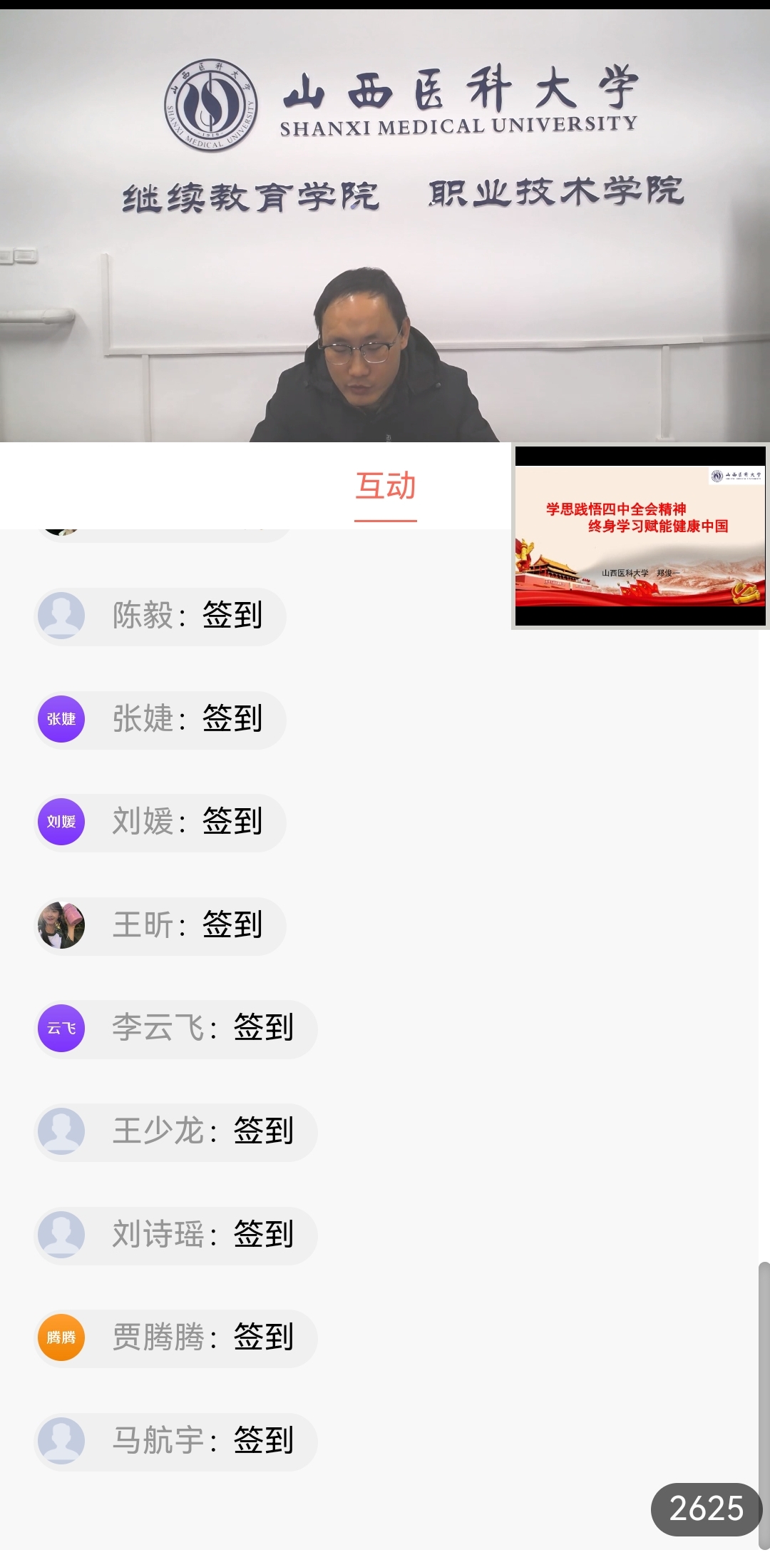 2026年1月2日晚,我院通过e-教学平台,以网络直播形式为2026级非脱产高等学历继续教育新生举办“开学第一课”。活动由继续教育学院党总支书记宋修珍主持,9个专业近千余名新生及年级主任、教学保障人员和学院全体教职工齐聚云端听课。次日,各专业课程按照教学计划有序展开。