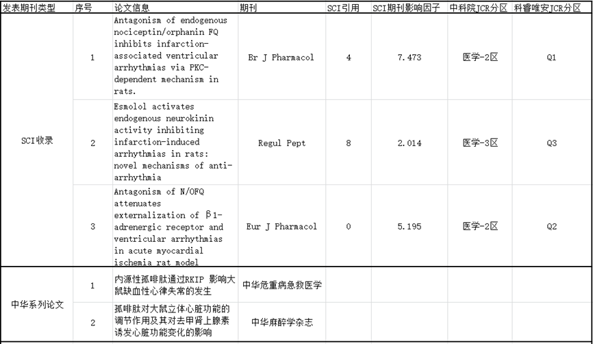 发明专利“孤啡肽受体特异性拮抗剂在制备治疗心律失常药中的应用” 专利号:ZL202010280511.9;