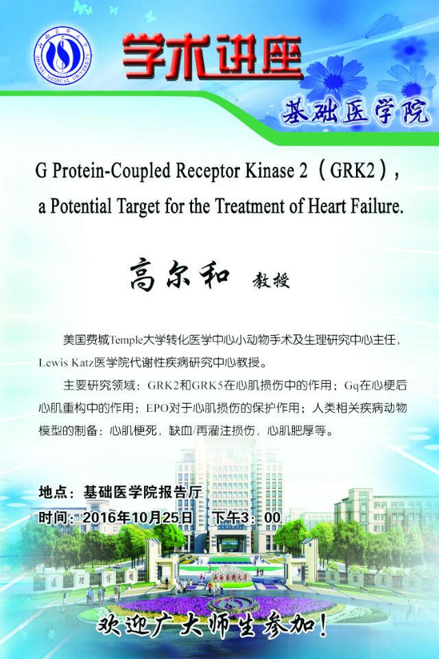 学术讲座:G Protein-Coupled Receptor Kinase 2 (GRK2),a Potential Target for the Treatment of Heart Failure