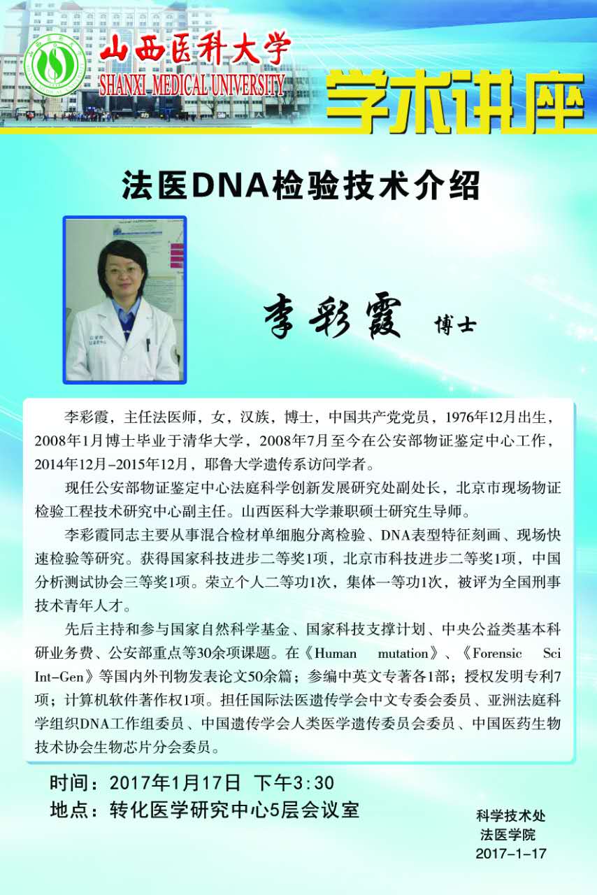 学术讲座:法医DNA检验技术介绍