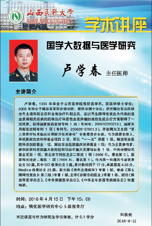 学术讲座:新型纳米药物载体在肿瘤靶向治疗的应用