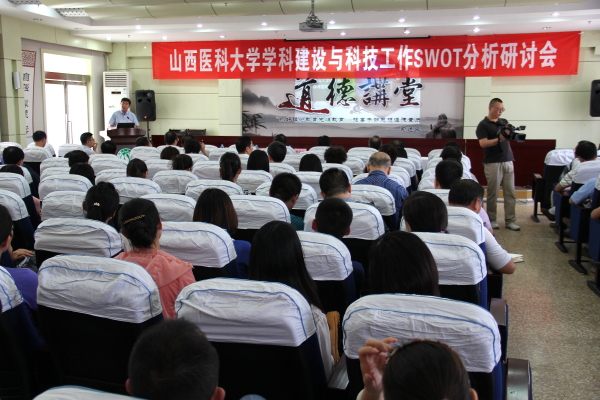 2015年6月5日,万象城组织召开学科建设与科技工作SWOT分析战略研讨会,万象城八个院系/学科分别引进SWOT管理理念和分析策略进行了学科建设和科技工作的SWOT分析和汇报。教育部科技发展中心李志民主任、校长段志光教授、副校长李思进教授参加研讨会,并作为点评专家指导学科汇报,作为点评专家的还有我想张策教授和牛侨教授。学校相关职能部门负责人、各院系、重点学科负责人和教师代表100余人参加了会议。会议由李思进副校长主持。