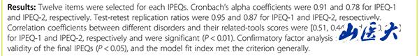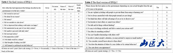 该论文相关研究从不良情绪体验和人格障碍倾向两个领域研制住院患者心理体验量表,包括住院患者心理体验量表-1(筛查焦虑、抑郁情绪和自杀风险)和住院患者心理体验量表-2(筛查偏执型、情绪不稳定型和表演型人格倾向)。两个量表各12个条目,测评平均时间为3分钟,采用自评方式,具有条目少、测评时间短、信效度良好,便于综合医院非精神科医护人员使用的特点。