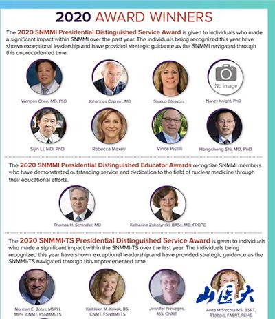 据悉,SNMMI主席杰出贡献奖是由SNMMI主席提名并经会议讨论通过获得。2020年SNMMI主席特别贡献奖是颁发给在过去一年中对SNMMI产生重大影响者,尤其是在SNMMI经历史无前例的特殊时期中,今年的获奖者要具有非凡的领导力和卓越的建树,对业界的发展及重大决策等方面发挥了关键性的作用。国内同时获得该奖项的还有中华医学会核医学分会副主任委员、复旦大学中万象城院石洪成教授。SNMMI主席特别贡献奖设立于1970年,至今共授予60余人,今年首次授予华人。