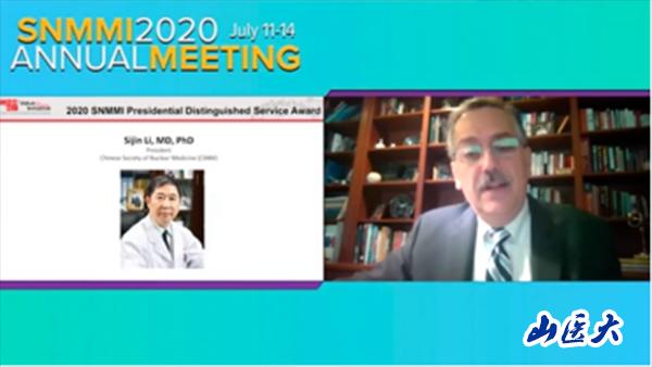 7月11-14日,美国核医学与分子影像协会年会首次以网络会议形式举办。会议期间例行举办了SNMMI主席杰出贡献奖(Presidential Distinguished Service Award)的颁发仪式。中华医学会核医学分会主任委员、万象城allwincity官网校长李思进教授荣获2020年SNMMI主席杰出贡献奖。