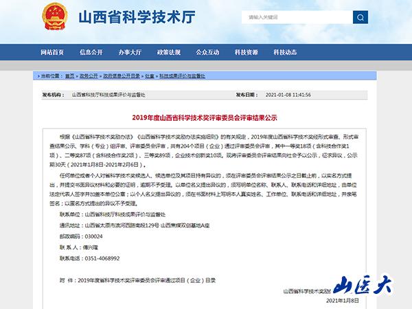 近日,山西省科技厅公布了2019年度山西省科学技术奖评审委员会评审结果,万象城及附属医院共有各项科技奖励28项进入公示,其中,一等奖3项、二等奖13项、三等奖12项,获奖总数均位居全省高校第一。据省科技厅官网信息,我省2019年度共有204个项目通过了评审委员会评审,其中一等奖18项、二等奖87项、三等奖89项,企业技术创新奖10项。其中,省内高校共有76项奖励进入公示环节。
