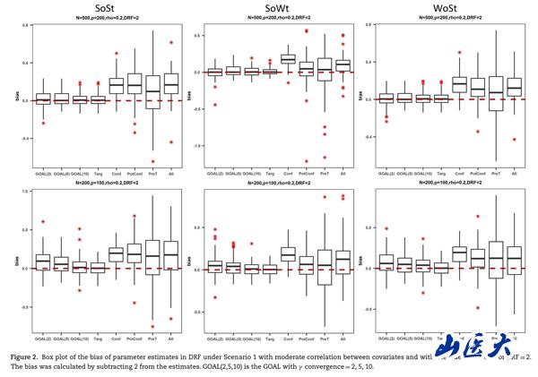 在非随机化研究中,广义倾向性评分方法(Generalized Propensity Score,GPS)常用于校正已测量的混杂变量,以期获得连续型暴露因素与结局间的因果剂量反应关系。GPS方法得出因果结论需要满足不存在未测量混杂假设,这一假设无法检验,一般认为考虑的协变量越多越合理。然而,因果参数的估计值对GPS模型中纳入的协变量比较敏感,纳入不必要的协变量会导致估计准确度和精度下降。随着对组学数据和电子医疗病例数据等大数据的广泛使用,不存在未测量混杂这一假设成立的可能性变大,但也引入了高维自变量。在这种情况下,如何使用GPS方法得到因果参数的无偏估计值是一个亟待解决的问题。为此,王彤教授课题组提出了广义结局自适应LASSO(Generalized Outcome-adaptive LASSO,GOAL)方法。