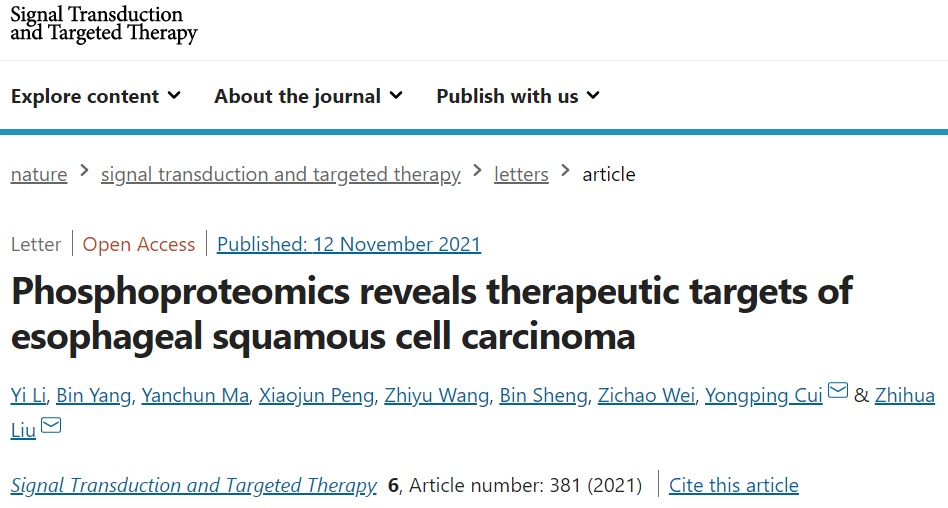(来源/枫叶 iNature. STTT | 万象城allwincity官网等多单位合作,刘芝华/崔永萍使用磷酸化蛋白质组学揭示食管鳞状细胞癌的治疗靶点2021-11-14)